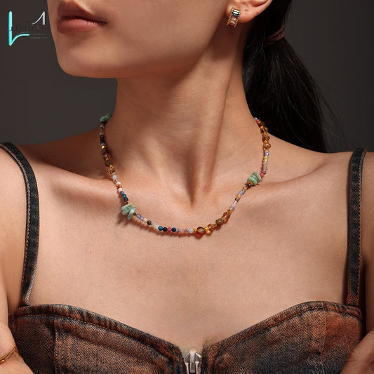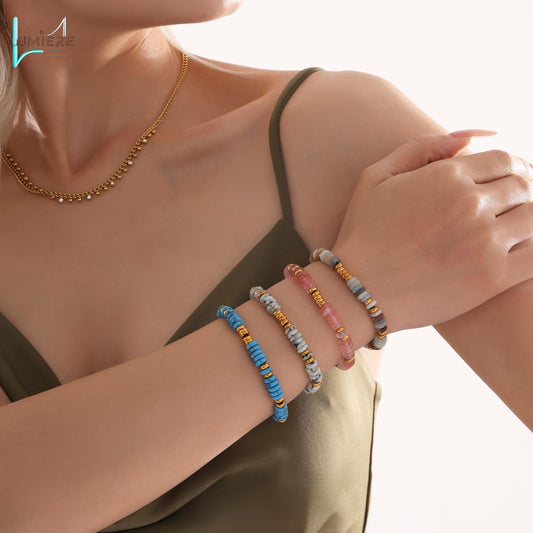 Natural Stone 18K Gold Abacus Bead Bracelet