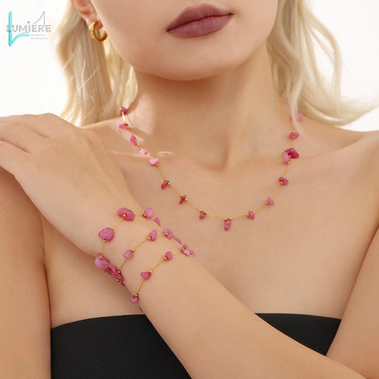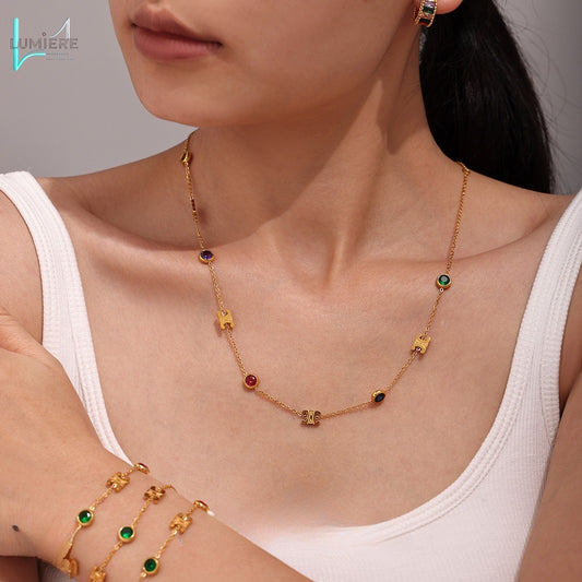 Color PVD electroplated genuine gold stainless steel zircon necklace bracelet set