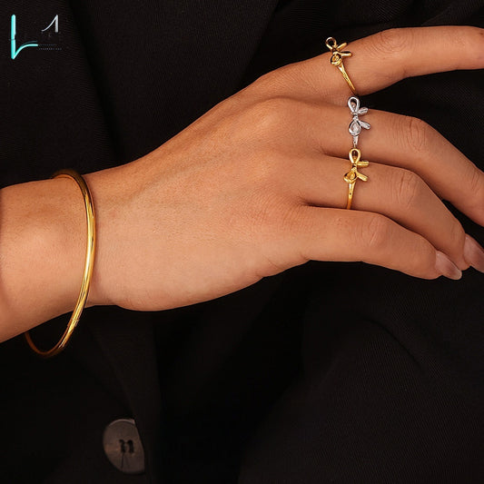 Stainless steel PVD plated 18K gold bow ring bracelet set