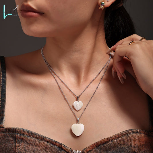 Stainless steel plated 18k gold heart-shaped shell pendant necklace